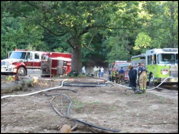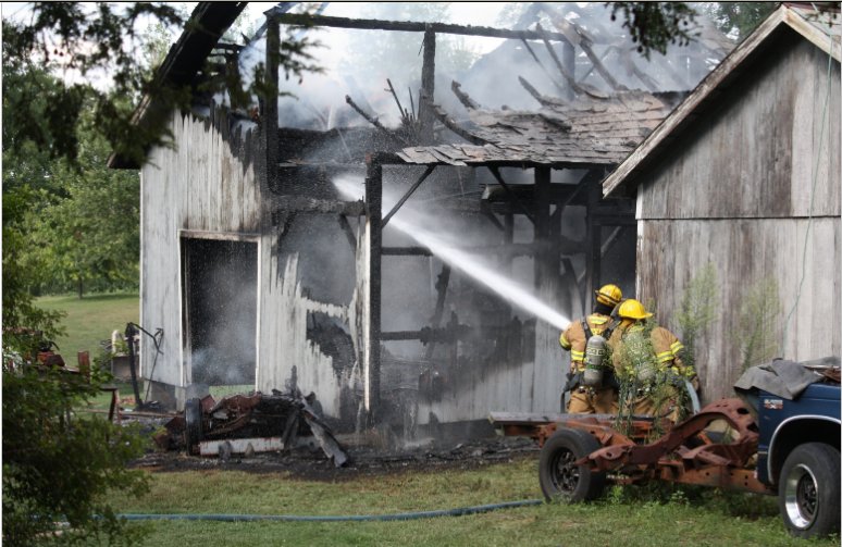 arrived at 5:01pm finding the barn fully involved in fire. Firefighters