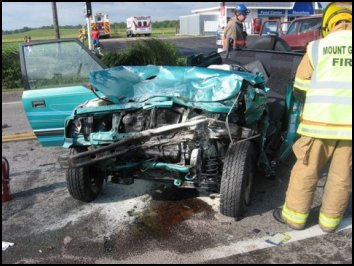 8:00 pm arriving on scene at 8:10 pm finding vehicle into a clump